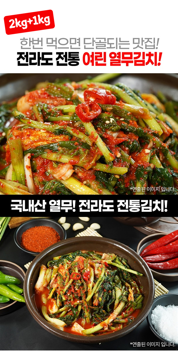 절임열무70%[(열무93%(국내산),천일염1%,(국내산)정제소금3%)],김치양념 20%[고춧가루/국내산,양파,생강,마늘, 젓새우(새우젓/국내산),멸치젓/국내산 ,멸치액(멸치액젓/국내산),찹쌀풀,정 제수,물엿,설탕] 당근채5%(국내산),양파채5%(국내산) *새우함유 |