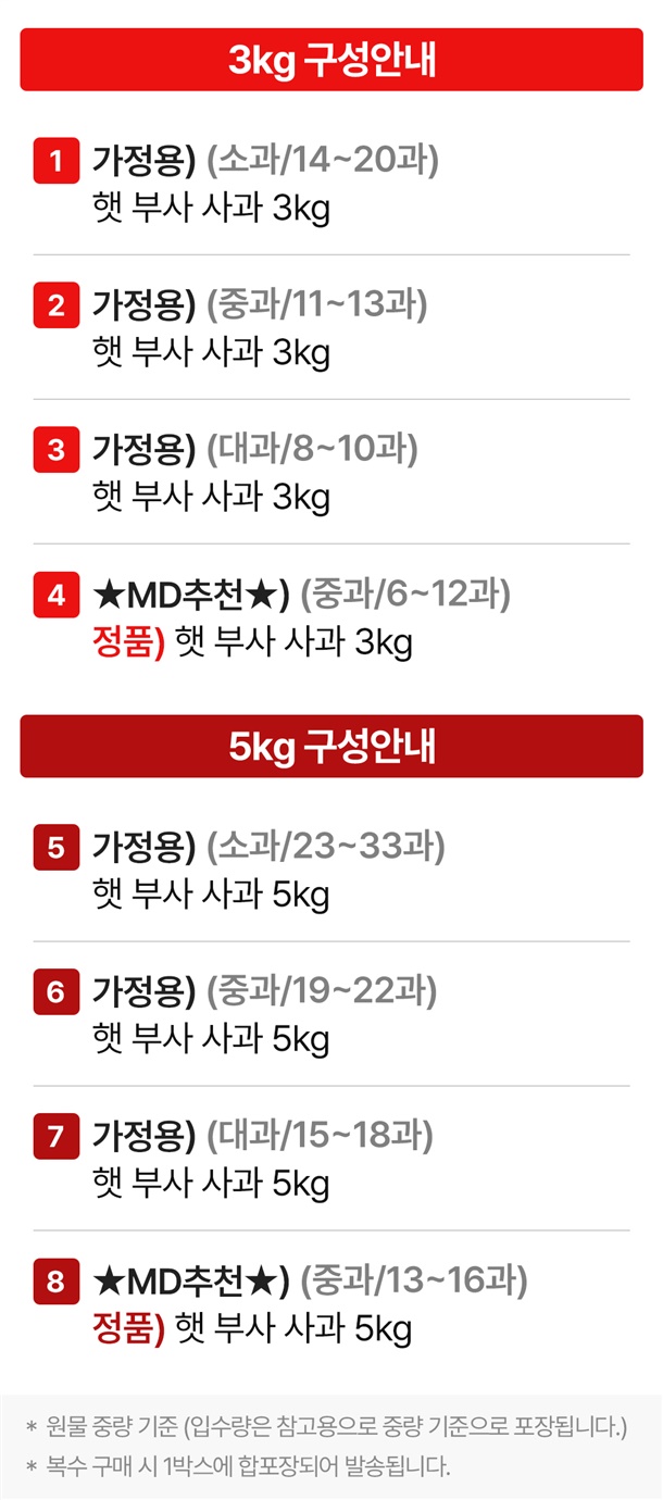 (가정용 소과/중과/대과) 3kg, 5kg / (정품 중과) 3kg, 5kg |
