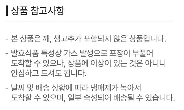 - 재판매가 불가한 신선식품 특성상 상품 하자 외의 단순변심(맛, 향, 식감 등)으로 인한 교환 및 반품이 불가합니다.