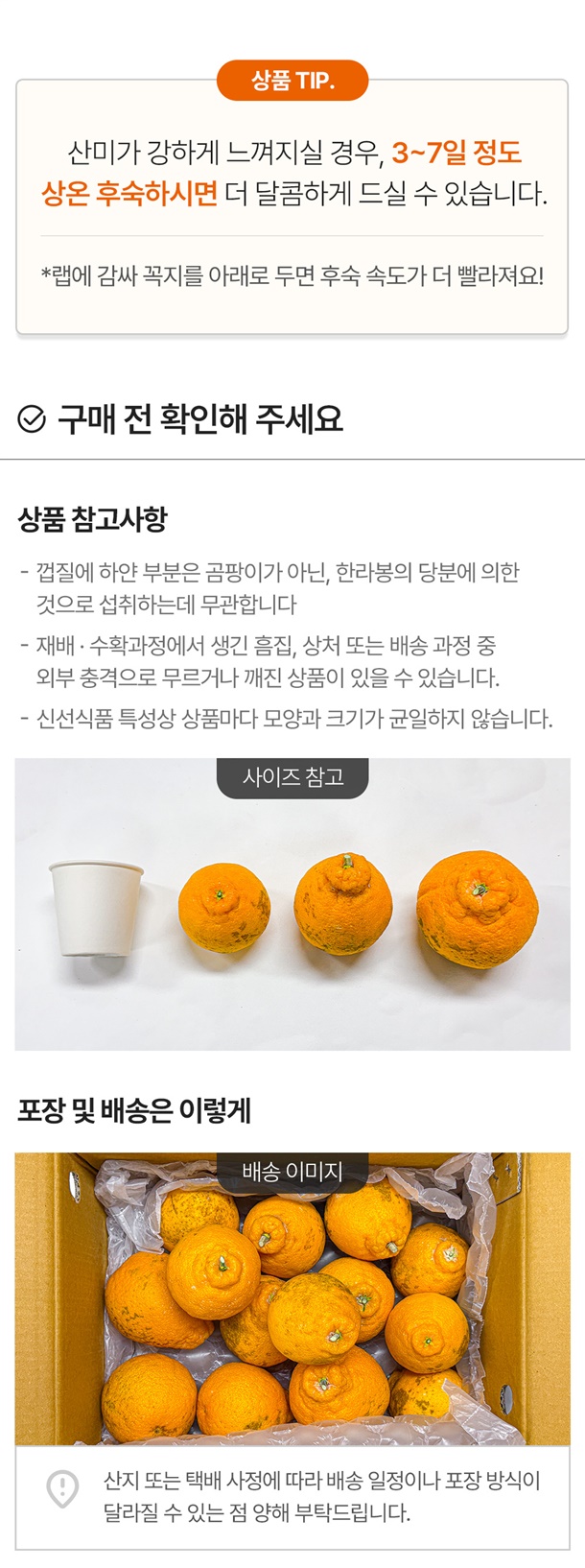 - 배송일 지정은 불가하며 산지에서 순차적으로 출고됩니다. 배송 메시지는 배송 시 택배기사에게 전달되는 사항으로 날짜가 기재 되어있어도 지정일 배송이 어렵습니다.