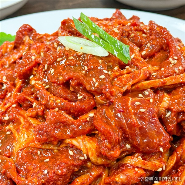 돼지사태(칠레)59.3%, 소스40.7%-[표고버섯(국내산)], 고추장{[현미쌀(국산),물엿,혼합조미료]중국산}, 고춧가루(중국산), 정백당, 볶음깨, 후추, L-글루타민산나트륨, 간마늘, 참깨기름 |