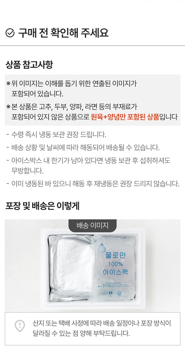 - 재판매가 불가한 신선식품 특성상 상품 하자 외의 단순변심(맛, 향, 식감 등)으로 인한 교환 및 반품이 불가합니다.