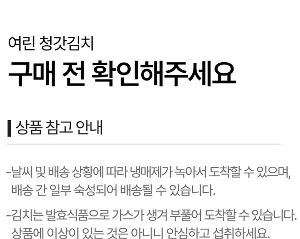 - 재판매가 불가한 신선식품 특성상 상품 하자 외의 단순변심(맛, 향, 식감 등)으로 인한 교환 및 반품이 불가합니다.