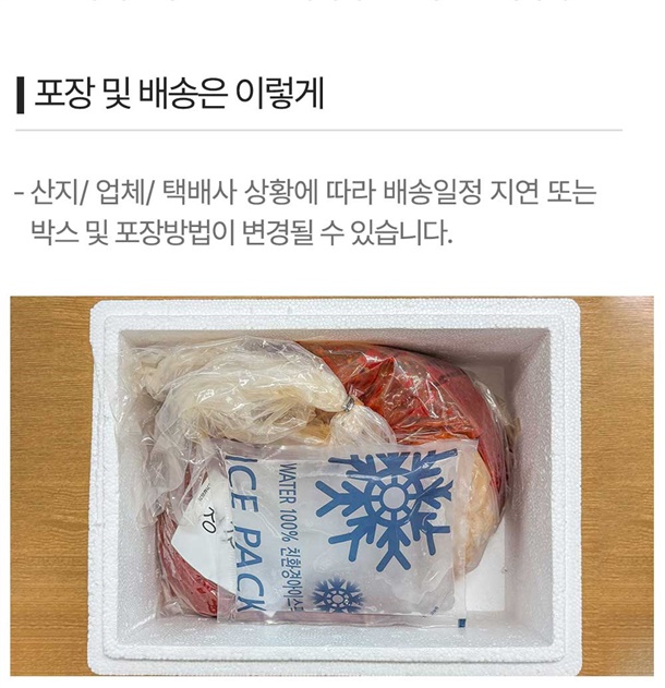 - 배송일 지정은 불가하며 산지에서 순차적으로 출고됩니다. 배송 메시지는 배송 시 택배기사에게 전달되는 사항으로 날짜가 기재 되어있어도 지정일 배송이 어렵습니다.