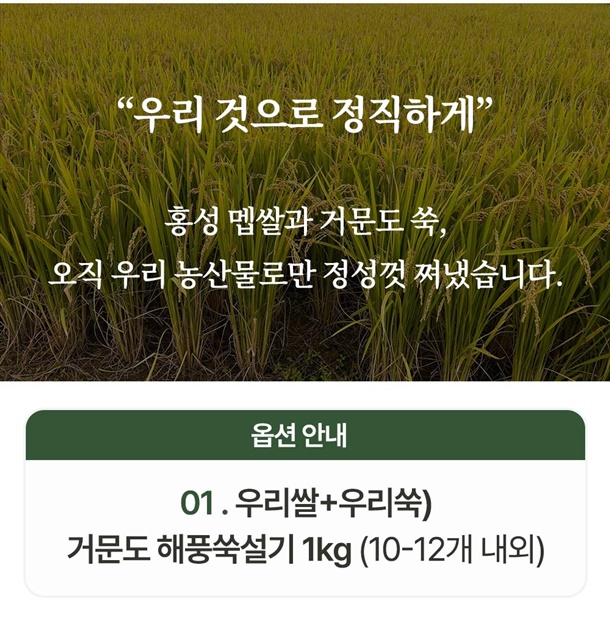 멥쌀(국내산)55.52%,쑥잎(국내산)33.31%,설탕,정제수,정제소금 |