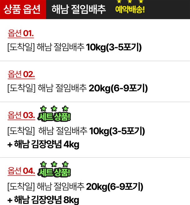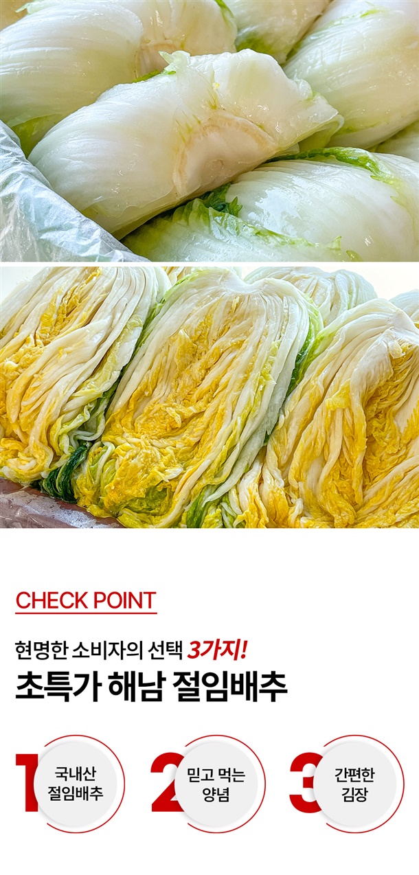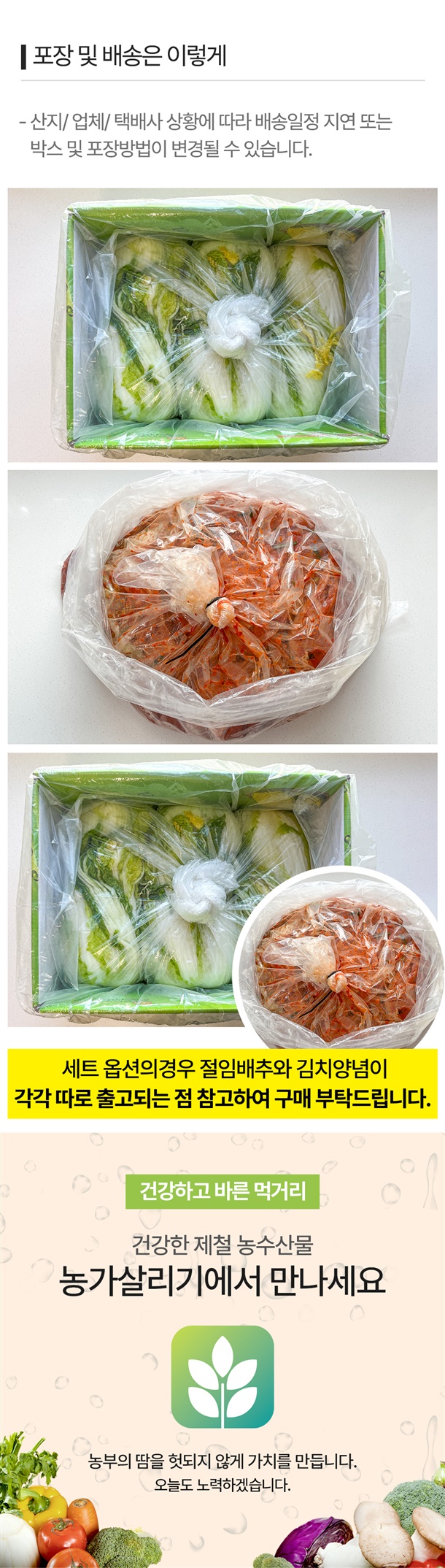 수령후 1~2일 이내 사용을 권장 드립니다. / 김장 3시간전에 물을 빼는것을 권장 드립니다. |