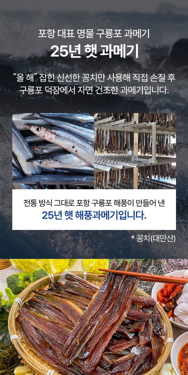 포항구룡포과메기-포항구룡포과메기사업협동조합( 과메기 수입원 : ㈜해랑) / 야채세트-주영씨푸드 |