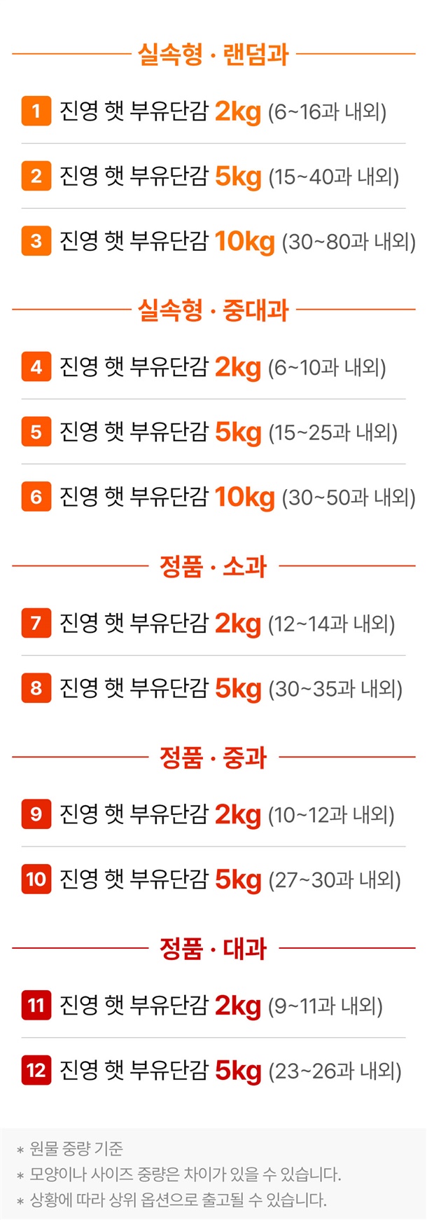 (실속형 랜덤과/중대과) 2kg, 5kg, 10kg / (정품 소과/중과/대과) 2kg, 5kg |