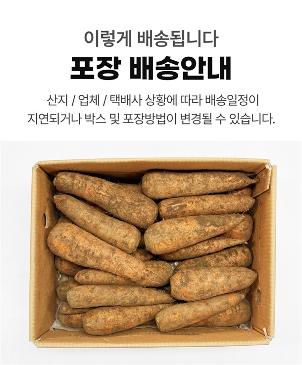 - 배송일은 결제 다음 날부터 평일 기준 2~4일 정도 소요됩니다. 주문 폭주나 산지, 택배 상황에 따라 추가로 지연될 수 잇습니다.