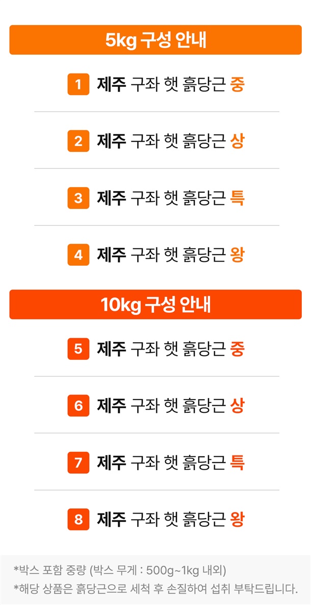 5kg(중/상/특/왕) , 10kg(중/상/특/왕) |