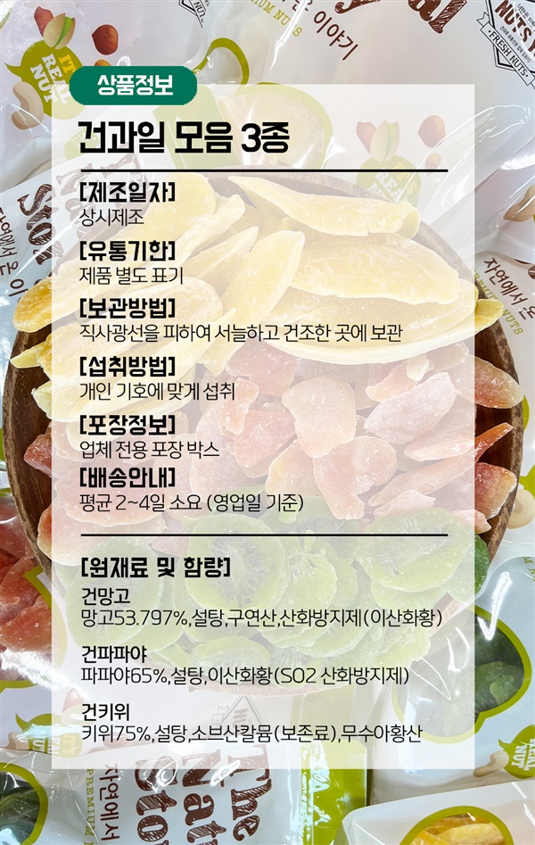 과일 그대로 말려 만든 건과일 3종