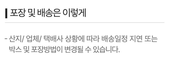 - 배송일 지정은 불가하며 산지에서 순차적으로 출고됩니다. 배송 메시지는 배송 시 택배기사에게 전달되는 사항으로 날짜가 기재 되어있어도 지정일 배송이 어렵습니다.