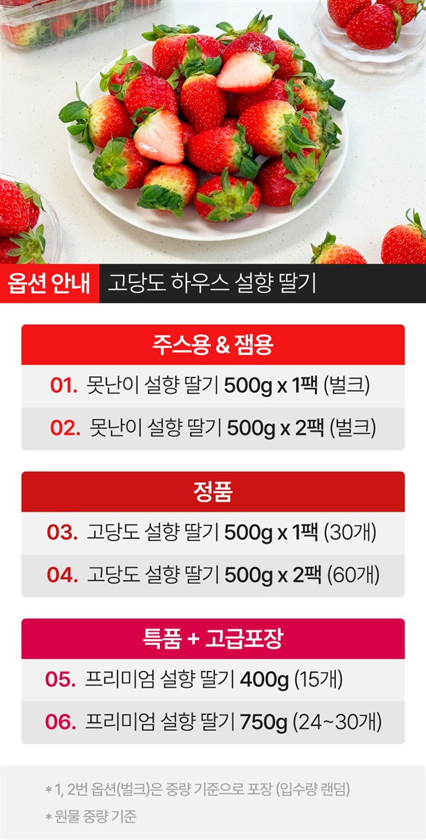 (주스용&잼용 / 벌크) 500g*1팩, 500g*2팩 / (정품) 500g*1팩, 500g*2팩 / (특품) 400g, 750g |