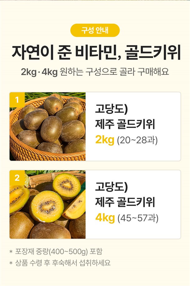 2kg, 4kg (*포장재 중량 400~500g 포함) |