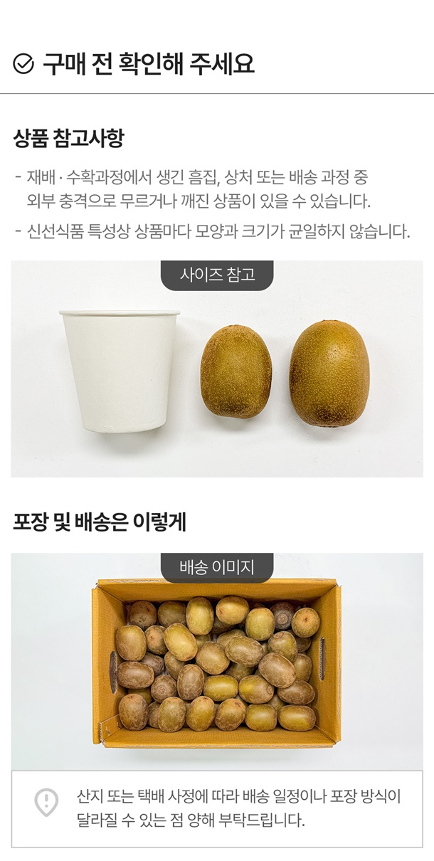 - 배송일 지정은 불가하며 산지에서 순차적으로 출고됩니다. 배송 메시지는 배송 시 택배기사에게 전달되는 사항으로 날짜가 기재 되어있어도 지정일 배송이 어렵습니다.