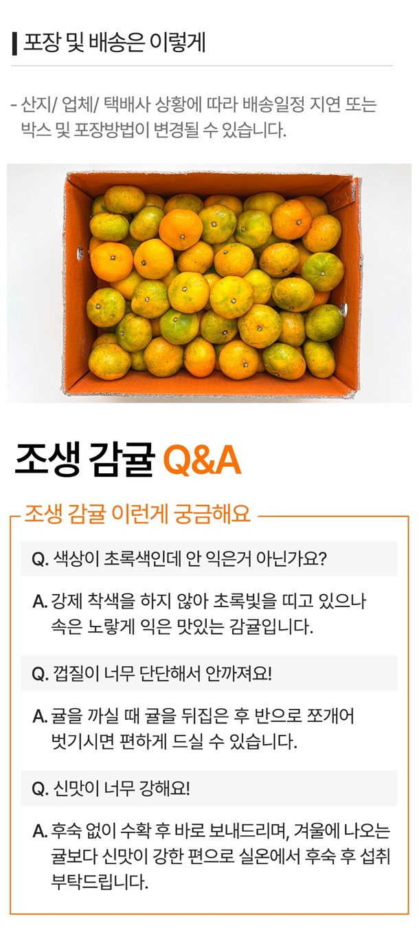 - 배송일 지정은 불가하며 산지에서 순차적으로 출고됩니다. 배송 메시지는 배송 시 택배기사에게 전달되는 사항으로 날짜가 기재 되어있어도 지정일 배송이 어렵습니다.