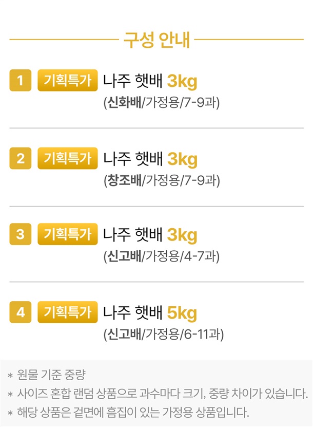 (신화배/창조배) 3kg / (신고배) 3kg, 5kg |
