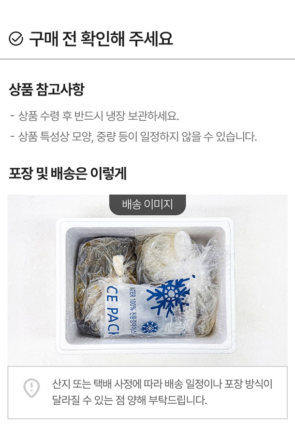 - 배송일 지정은 불가하며 산지에서 순차적으로 출고됩니다. 배송 메시지는 배송 시 택배기사에게 전달되는 사항으로 날짜가 기재 되어있어도 지정일 배송이 어렵습니다.