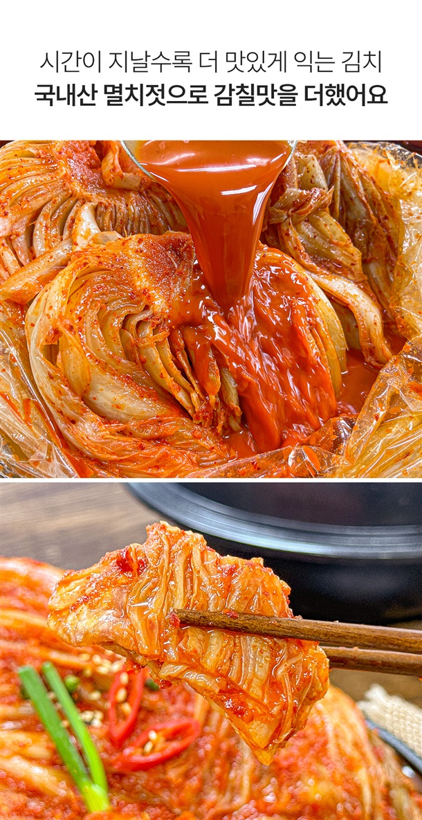 절임배추[배추(국산)98%,정제소금(국산)2%]80%,정제수6.8%,고춧가루[건고추(국산)]3.5%,무(국산)3%,알파미분[쌀(국산)],새우젓[새우(국산)],멸치젓[멸치(국산)],양파(국산),마늘(국산),멸치액젓[멸치(국산)],천일염(국산),다시마분말[다시마(국산)] [새우 함유] |