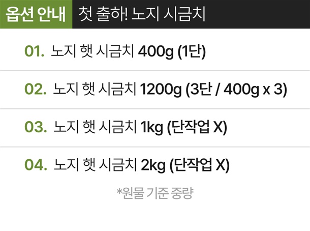 1단(400g 내외) / 3단(1.2kg 내외) / (벌크포장,단작업X) 1kg, 2kg |