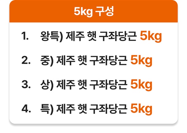 (왕특/중/상/특) 5kg (*포장재 중량 750g 내외 포함) |