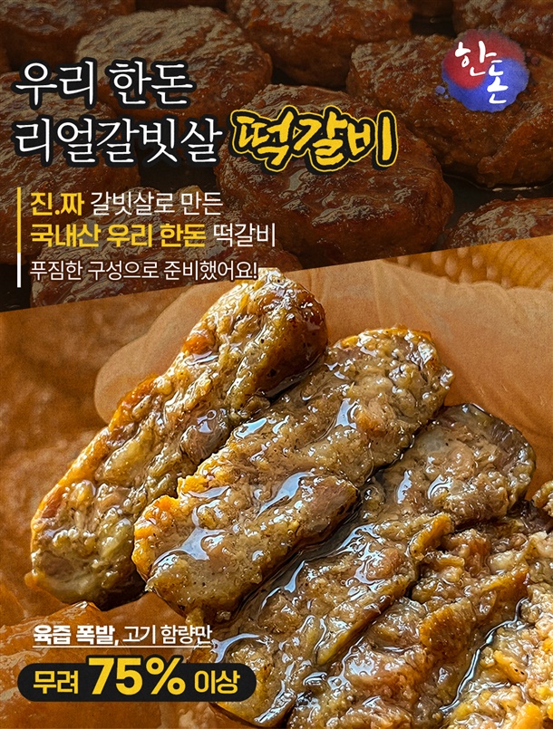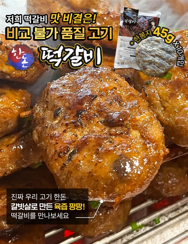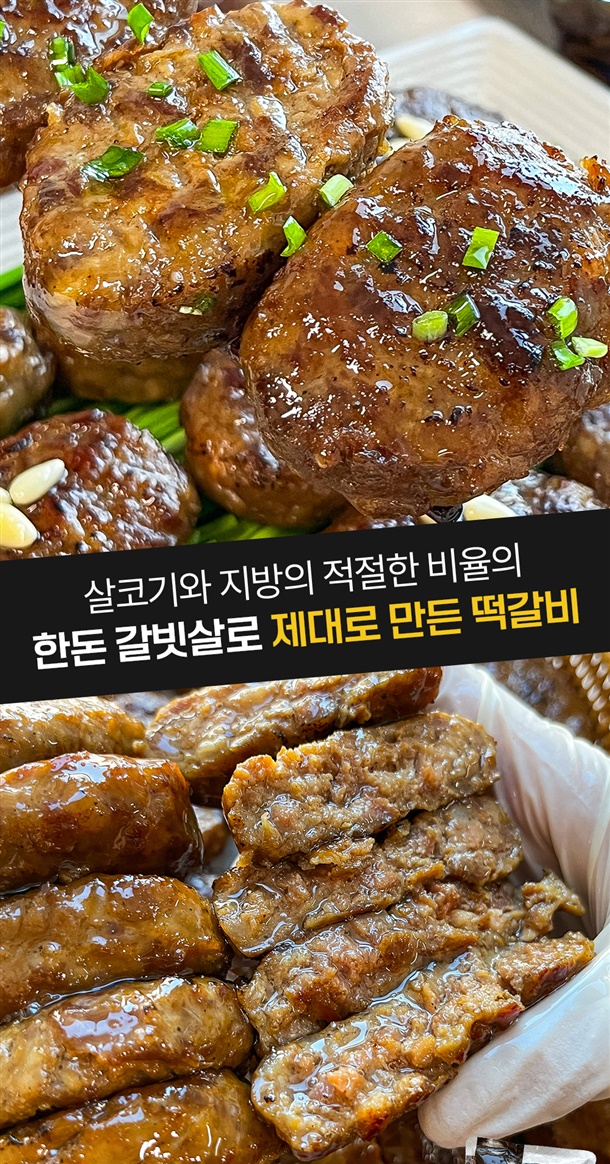 돼지고기(국내산)75.93%[갈비살27.62%,모듬살27.47%,지방20.84%],빵가루(수입산)5.48%, [밀(미국산,호주산,캐나다산)글루텐(프랑스산),정제수,효모].백설탕4.99%,양파(국내산)4.28%, 혼합간장[정제수,탈지대두(수입산),천일염],소불고기소스(양조간장,탈지대두,정제수), 너비아니시즈닝분말[비프엑기스분말,혼합간장,양파분말],간마늘(수입산), 후추가루[흑후추분말60%,옥분40%],카라멜색소,참기름(수입산),소금(국내산) *쇠고기,돼지고기,닭고기,대두,밀,조개류 함유 |