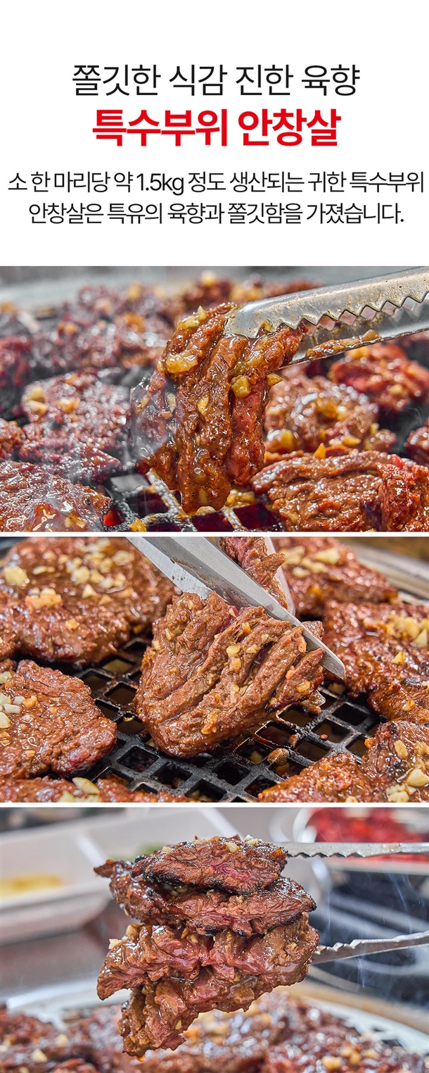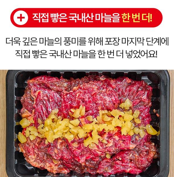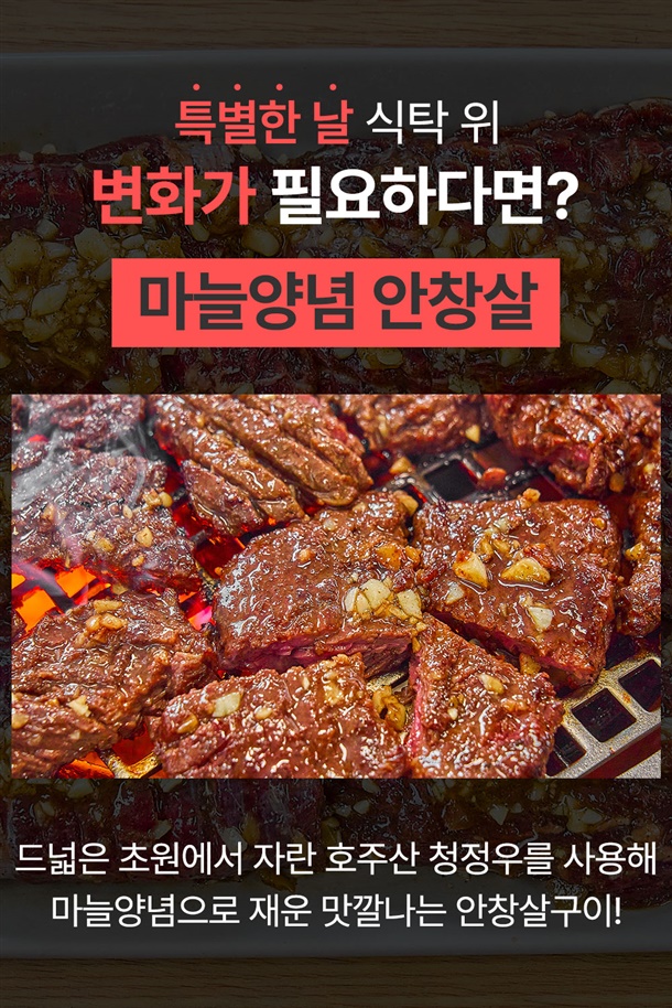 원재료명 및 함량 (원산지) 소안창살(호주)80%, 소스18%(정제수,백설탕,참기름,냉동마늘,과당,배퓌레,가공소금,천연향신료,잔탄검), 마늘(국내산)2%