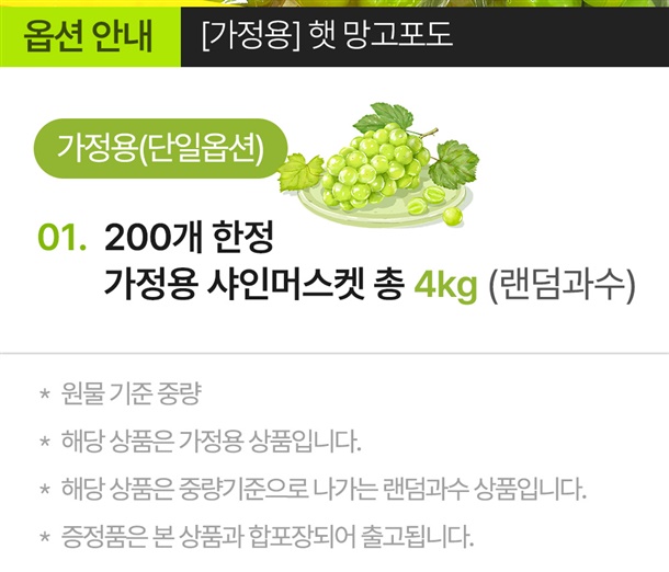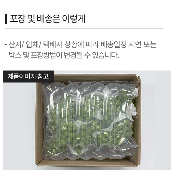 - 배송일 지정은 불가하며 산지에서 순차적으로 출고됩니다. 배송 메시지는 배송 시 택배기사에게 전달되는 사항으로 날짜가 기재 되어있어도 지정일 배송이 어렵습니다.