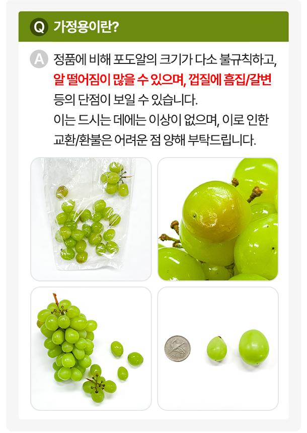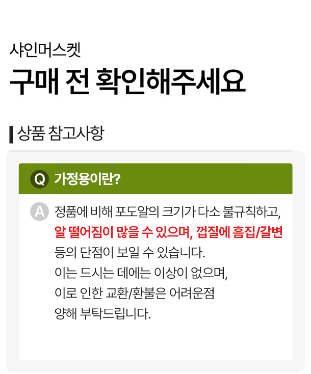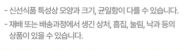 - 재판매가 불가한 신선식품 특성상 상품 하자 외의 단순변심(맛, 향, 식감 등)으로 인한 교환 및 반품이 불가합니다.